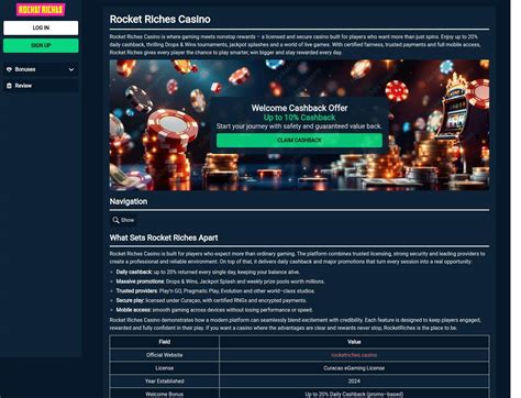 | Learn about its player feedback and complaints, t&cs, games & bonuses. | Spill spilleautomater, live casino og få daglig cashback hos rocket riches casino. |